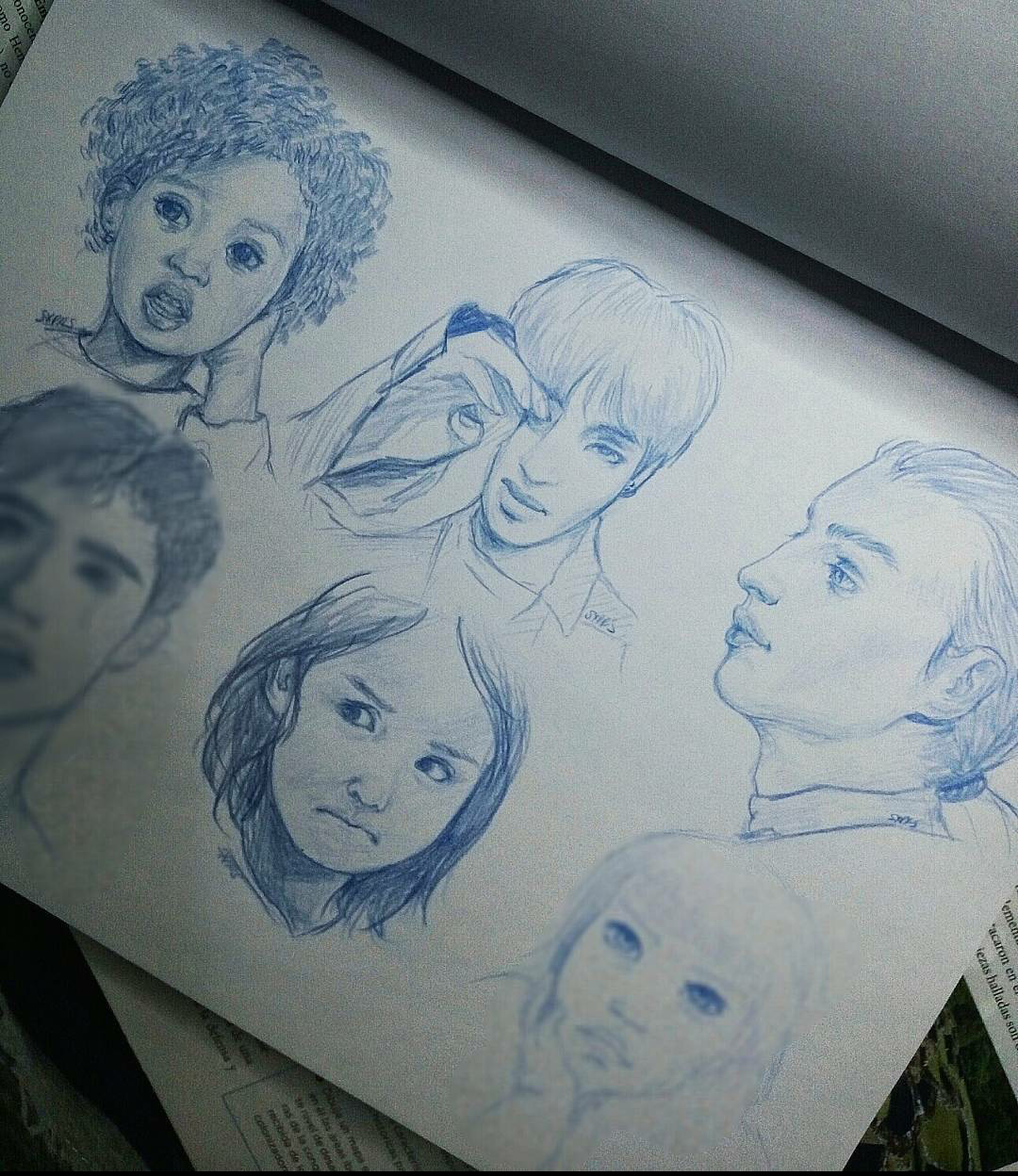 Estudio de diferentes rostros con lápiz azul, de @saraglezart