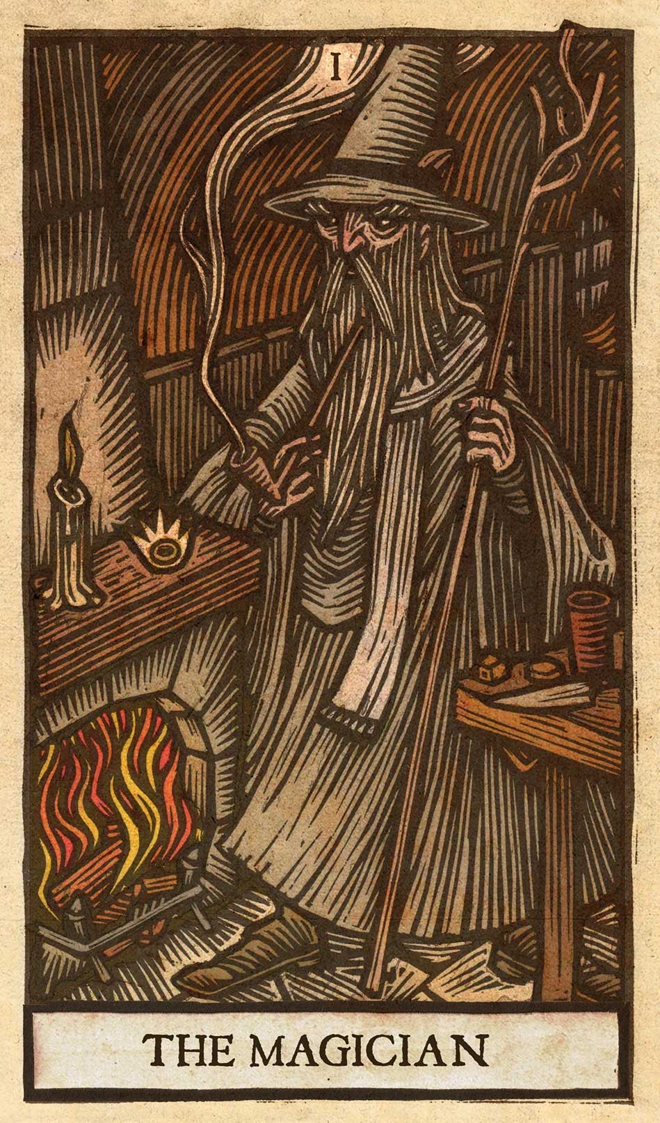 “Soy autodidacta, y para mis primeros trabajos profesionales escogí técnicas digitales porque no sabía muy bien cómo funcionaban las tradicionales. Estaba muy cómodo trabajando con el ordenador (y sigo haciendo muchas ilustraciones así) pero llegó un momento en el que me apetecía probar otras cosas. El grabado me llamaba mucho la atención por su esencialidad, especialmente clara en caso de la xilografía y el linograbado. Tardé en decidirme, porque necesitaba montar un taller, comprar un montón de material… Al final di el salto, movido por la idea de ilustrar a Tolkien con esa técnica. Me pareció buena idea crear imágenes de la Tierra Media que parecieran haber sido hechas allí, por un hobbit en su smial o un enano en lo profundo de su mina. El grabado me pareció perfecto para transmitir eso.”