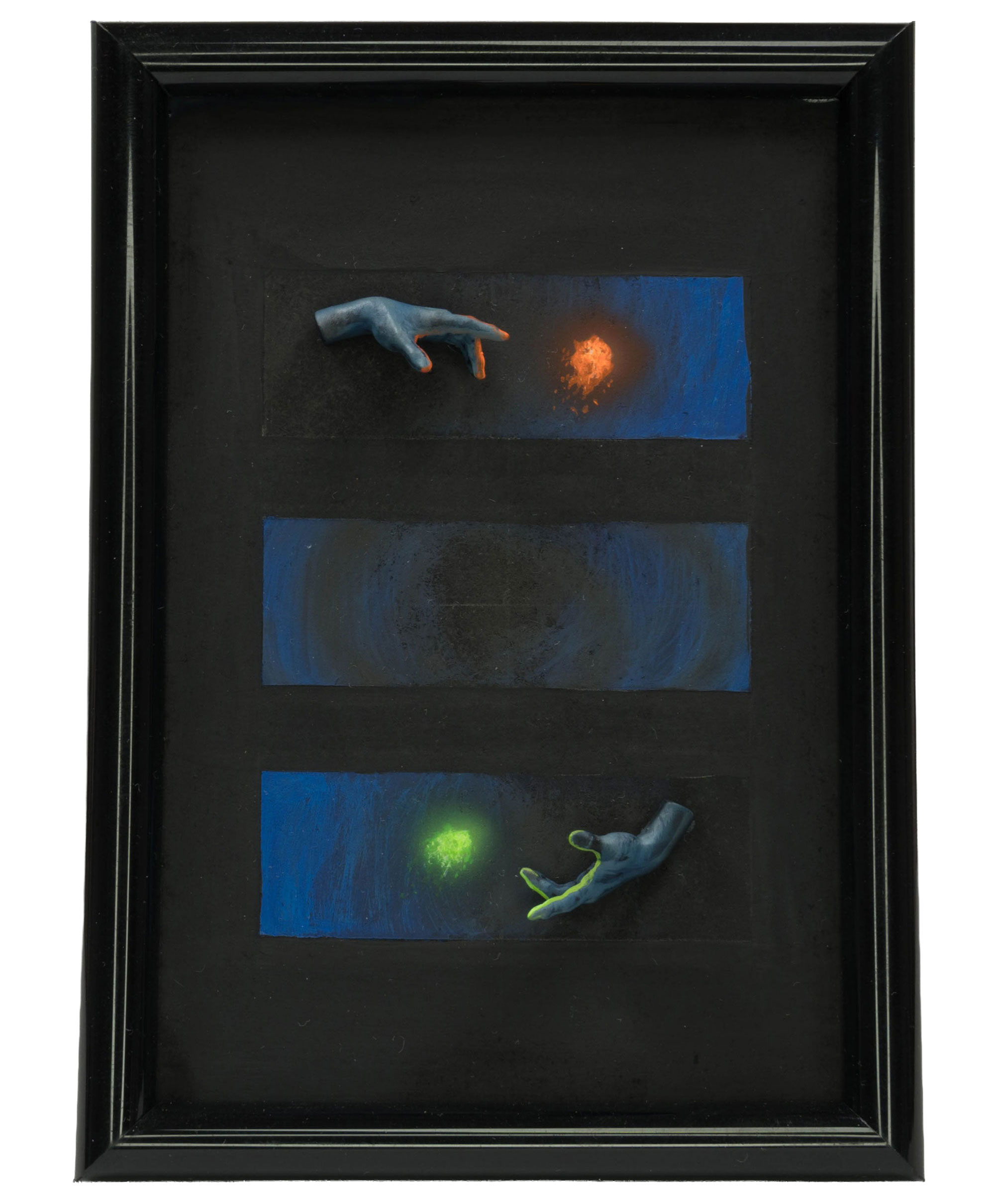 Aquí me gustaría hacer alusión a una pieza que pinté para representar todo esto, la imagen que acompaña esta sección y resume ese proceso.