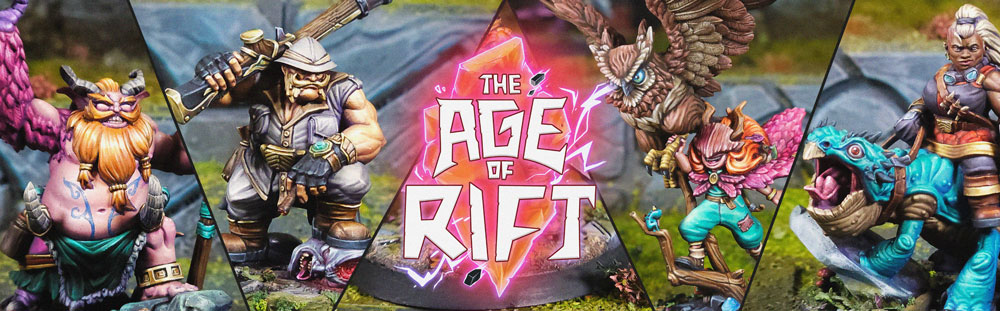 The Age of Rift es un juego de mesa, con su tablero y sus miniaturas cuidadosamente impresas. Un juego de escaramuzas para dos participantes en el que cada uno maneja a distintos héroes de la historia que combatirán entre sí. Dichos héroes están modelados en 3D e impresos en resina, listos para montar y jugar o incluso pintar. Las miniaturas, aunque no son muchas, son bastante originales, teniendo un diseño muy llamativo y sin resultar recargadas. Parecen personajes diseñados para una película de animación, con formas y accesorios atractivos al ojo. Cuenta con un tablero y un mazo ilustrado, junto con un libro de explicaciones y reglas del juego. Precisamente fue el detalle de todas las miniaturas y las ilustraciones lo que me llamó la atención.